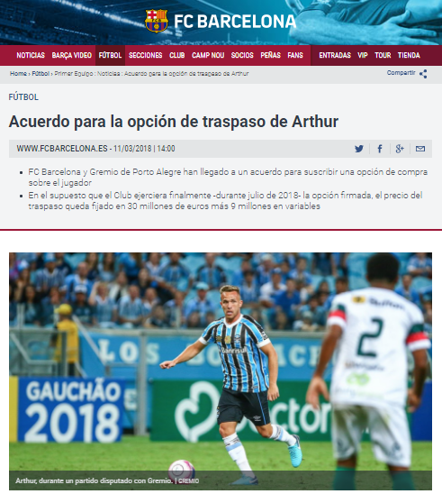 La noticia se anticipó tanto que parece ya no ser noticia, pero lo cierto es que recién hoy Barcelona comunicó de manera oficial el acuerdo con Gremio para el fichaje de Arthur, dando a conocer las cifras oficiales en que se concretará el vínculo.