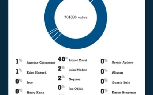 En dicha encuesta, yendo en contra de lo esperado, Cristiano Ronaldotenía el inesperado porcentaje de apenas 8% de los votos. El escolta era nada más ni nada menos que Mohamed Salad, con 31%. El líder era justamente Messi, con el 48% de los más de 700.000 votos emitidos.