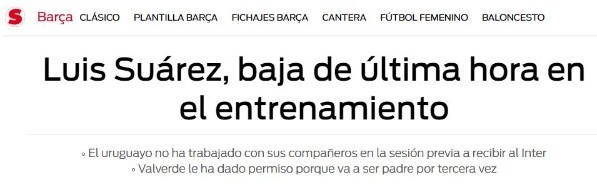 Es que Suárez tuvo que ir a atender sus responsabilidades familiares, puesto que su esposa está cerca de ser madre por tercera vez junto a él.