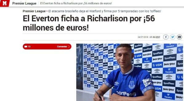 Pero, para hacerse con los servicios del exfutbolista de Fluminense, Evertondebió desembolsar una auténtica fortuna: nada más ni nada menos que la estruendosa suma de 56 millones de euros.