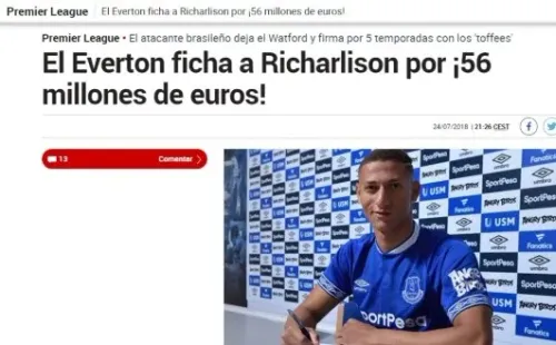 Posteriormente, Richarlisonfirmó un contrato por cinco temporadas con la escuadra de Goodison Park. Cabe destacar que, en la temporada pasada, el brasileño marcó cinco goles y dio cinco asistencias en Watford.