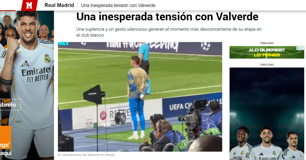 Pero eso no fue todo. Captaron a Federico Valverde a un costado del campo de juego, sin realizar movimientos de calentamiento junto al resto de sus compañeros, algo que medios como los mencionados anteriormente interpretaron como una actitud en modo de protesta por parte del exjugador de Peñarol.