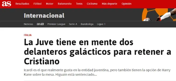 Indicando que el goleador argentino “está sentenciado” fruto de su falta de garantías a la hora de saltar al campo de juego y marcar tantos, el portal explicó que la Juventus quiere sumar una nueva estrella para que la comodidad del astro portugués allí no se vea perturbada en lo más mínimo.