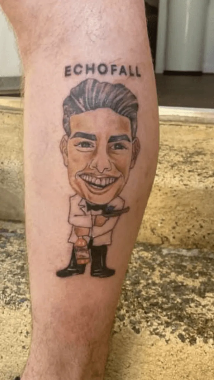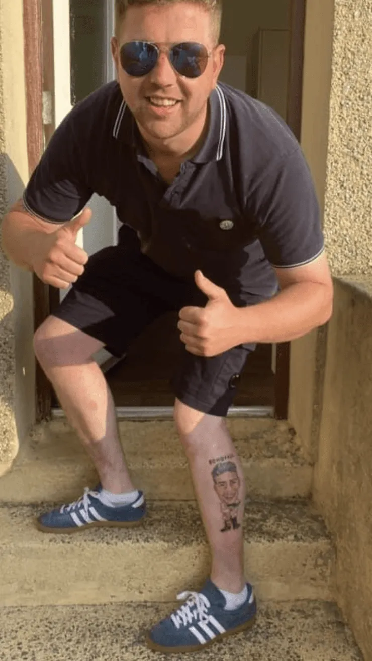 Everton reconoció al hincha y tardó en hacerlo viral en las redes sociales. Se trata de Ben Hughes, quien fue el que le dio la botella a James. Por ese encuentro, el fanático se hizo un tatuaje de James Rodríguez con la botella y una pistola emulando al mítico y ficticio agente del Servicio Secreto Británico, ‘James Bond’.