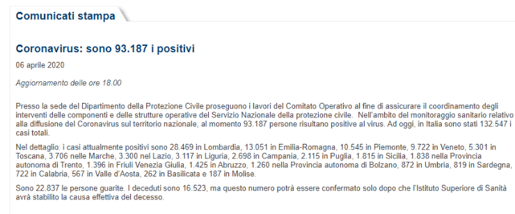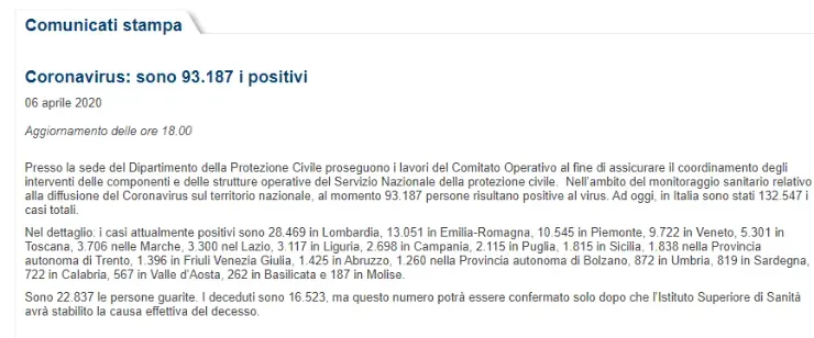 Este lunes, a través de su sitio web, el Departamento de Protezione Civilede Italia actualizó y confirmó que se registraron miles de casos nuevos del virus en el territorio. Lastimosamente para el personal de salud que trabaja incansablemente en contra de la expansión del problema desde hace varios meses, la cifra de muertos y contagios creció, una vez más, de a centenares.