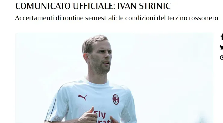 Ivan Strinic, futbolista croata que llegó libre al Milan al comienzo del mercado de pases, fue diagnosticado con un problema cardíaco y abandonará temporalmente el fútbol.