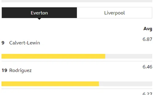 En las calificaciones de partido, BBC dio como figura del compromiso a Sadio Mané. Del Everton, el mejor calificado fue Dominic Calvert Lewin por su gol y el aporte que dio arriba en su constante lucha con la defensa. En segundo lugar quedó James Rodríguez, a quien se le valoró su aporte por la asistencia del primer gol, efectividad de pases y sitauciones de ataque que él creó.