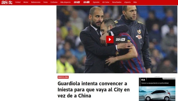 Según el diarioAs, Manchester City está dispuesto a entrar en la puja por Iniesta, algo que también están evaluando equipos como Arsenal y PSG.