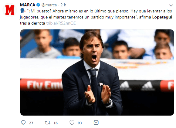 La derrota de este sábado ante Levante en el Santiago Bernabéu dejó una bomba a punto de explotar en la Casa Blanca, debido a que tanto la prensa como la afición Merengue le piden al presidente la cabeza del entrenador Julen Lopetegui.