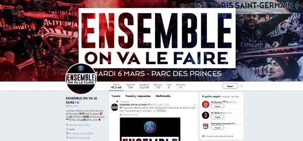 En esta tónica, PSG cambió incluso el nombre de su cuenta de Twitter, que ahora luce el lema“Ensemble on va le faire”, lo que en nuestro idioma equivale a“Juntos podemos”.