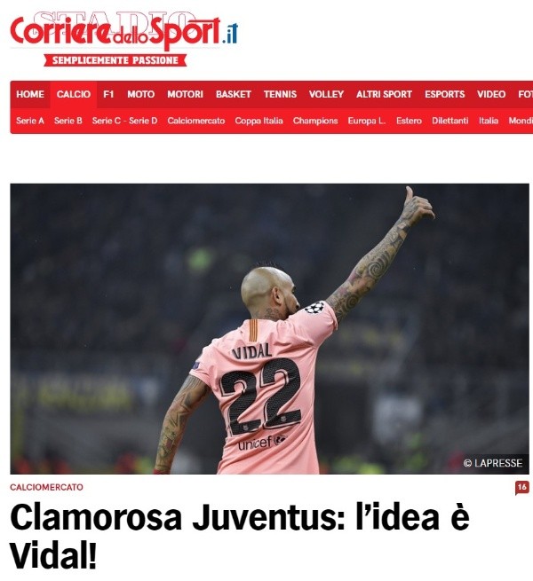 Corriere dello Sportdescribe a Vidal comoun“símbolo del renacimiento de la Juventus y el inicio de este ciclo ganador”. Sin embargo, destacan también que en las últimas semanas ha comenzado a renacer en Barcelona, ganando de a poco más lugar en el equipo.