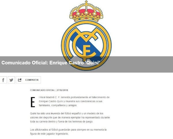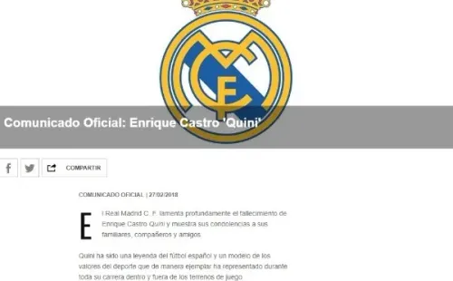 Por tal motivo, en los partidos de la jornada 26 del campeonato español que se disputaron tras su muerte fue unánime el respetuoso minuto de silencio. Luto al que se sumó con enorme respeto Real Madrid, clásico rival del Barcelona al que tan bien supo representar Quini, con un comunicado en sus redes sociales.
