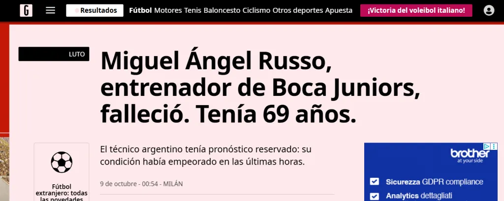 No solamente territorios como Argentina o Colombia despiden por estas horas a la figura de Miguel Ángel Russo. El entrenador de Boca Juniors ha fallecido a sus 69 años tras luchar contra una larga enfermedad y luego de una carrera de ensueño. Incluso al otro lado del Atlántico y en el viejo continente, diferentes medios de comunicación se hacen eco de la noticia que nadie quería tener que escuchar. Nace la leyenda de un laburante como pocos y de un ganador nato que se hizo querer tanto dentro como fuera del fútbol de la Albiceleste.