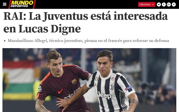 Según informa la ‘RAI’, la Juventustiene intenciones de hacerse con los servicios de Digne en el mercado de pases veraniego en Europa. Cabe destacar que Massimiliano Allegri quiere reforzar el sector izquierdo de la defensa de manera inminente.
