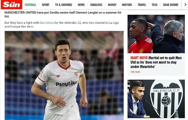 Según informa el periódico británico ‘The Sun’, el elenco comandado por José Mourinho está dispuesto a hacer una jugosa oferta por Lenglet de manera inminente. Mientras tanto, Sevilla no quiere perderlo.