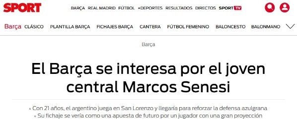 El medio europeo informó que el elenco Culéhabría generado cierto interés en hacerse con los servicios de Marcos Senesi, un joven defensor de San Lorenzo.