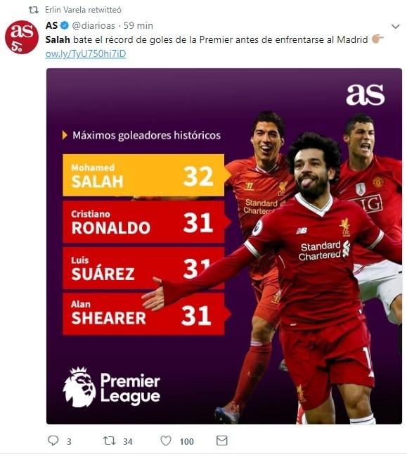 Y la temporada de Salah todavía puede ser mejor, porque el 26 de mayo en Kiev tiene la posibilidad de conducir a su equipo al título de Champions League, privando al Real Madrid y al crack portugués de alzar su tercera Orejona consecutiva.
