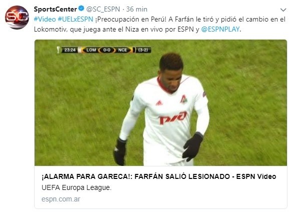 La Foquita tuvo que abandonar el campo de juego cuando se llevaban apenas 23 minutos disputados del duelo entre el Lokomotiv de Moscú y Niza, correspondiente a los dieciseisavos de final de la Europa League.