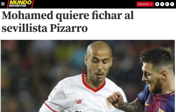 Se trata de Celta de Vigo, escuadra que acaba de contratar a Antonio Mohamed como director técnico. Como consecuencia, por pedido expreso del entrenador, Pizarro podría llegar procedente de Sevilla.
