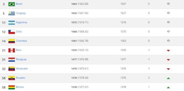 En el tercer puesto se quedó Brasil y Uruguay mantuvo la quinta posición. Más atrás, miran el Top 10 desde afuera Argentina (11°), Chile (12°), Colombia (14°) y México (15°).