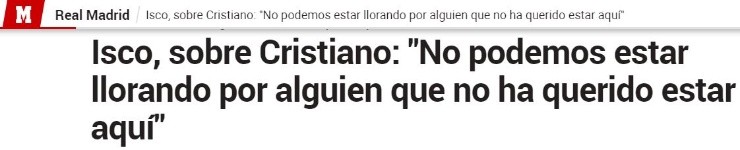 Al ser consultado sobre la ausencia de Cristiano, Isco, uno de los referentes de la institución Merengue, replicó de forma tajante.