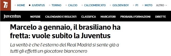 Según detalló el medio italiano Tuttosport, luego de la salida de Cristiano Ronaldo el pasado mercado, ahora sería Marceloquien expresó su deseo de partir en busca de nuevos horizontes.