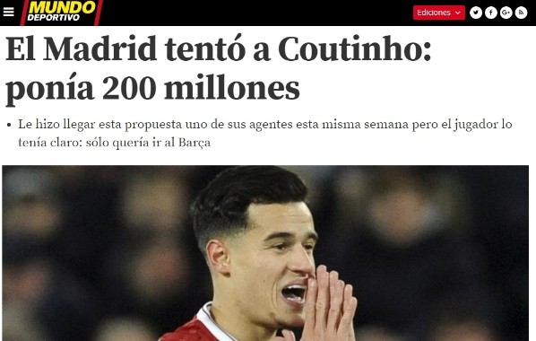 Según informa ‘Mundo Deportivo’, el ex futbolista de Liverpool ni siquiera analizó la posibilidad de marcharse a la escuadra conducida tácticamente por Zinedine Zidane, puesto que su objetivo era jugar en Barcelona y en ningún otro lado.