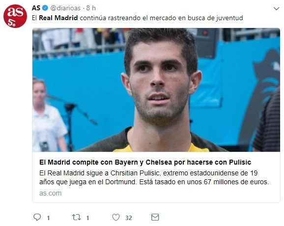 Sin embargo, desde la Casa Blanca ha surgido interés por el fichaje de Christian Pulisic, la mayor promesa del fútbol de los Estados Unidos, que actualmente milita en Borussia Dortmund y que también es pretendido por Bayern Munich y Chelsea.