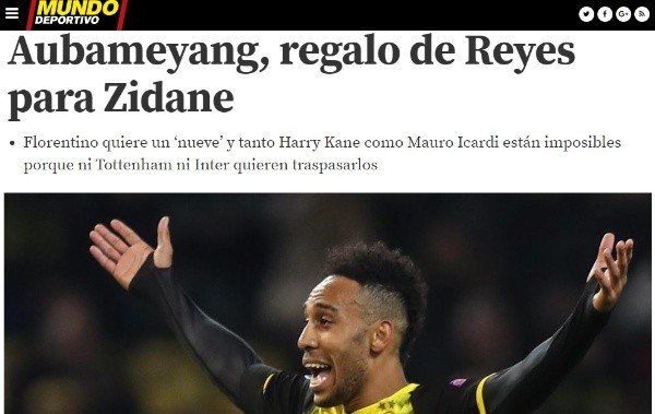Como consecuencia, y, tras descartar también los arribos de los jóvenes Kasper Dolberg, de Ajax, y Timo Werner, de Leipzig, Real Madrid efectuaría un acercamiento por Aubameyang con la meta de sumarlo en el próximo mercado de pases.