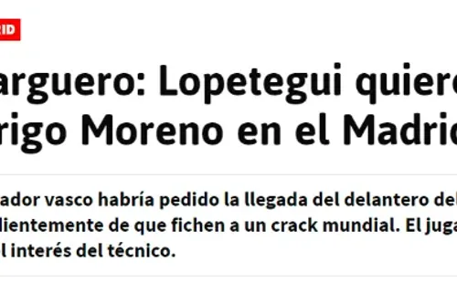 Para eso, según informa AS, Lopetegui le habría pedido a Florentino Pérez el fichaje de Rodrigo Moreno, futbolista que integró el plantel español que cayó eliminado ante Rusia en octavos.