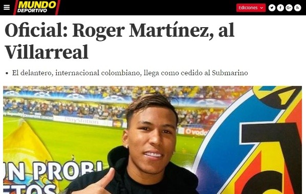 Villarreal llevaba varios días negociando el arribo de Roger Martínez y finalmente consiguió su cometido. Este fin de semana, el conjunto español finiquitó la contratación del delantero colombiano, que hará dupla con su compatriota Carlos Bacca.