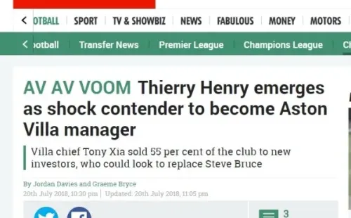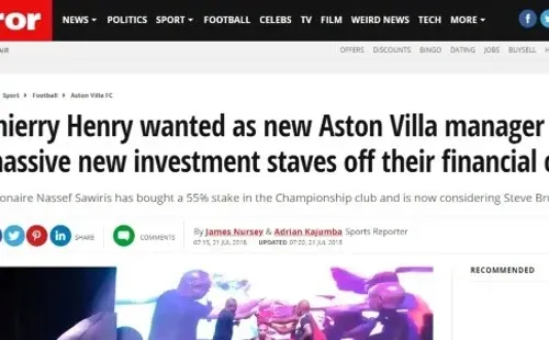 Tras esa buena experiencia, Henry podría tener su primera aventura como primer entrenador. Es que Aston Villa, histórico equipo inglés que quiere regresar a la Premier League, se ha interesado en sus servicios.