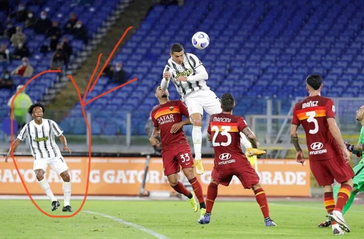 Muestra de lo anterior quedó registrado en una épica foto que tomaron justo cuando CR7 se elevaba por los aires. En el plano, aprecía atrás Cuadrado quien se disponía a cazar la pelota de llegar a sobrar a Cristiano. Su rostro de impresión al salto del portugués nos cuenta todo: