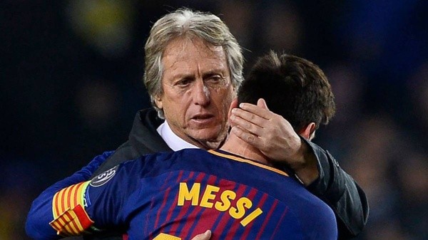 Concluído el partido que cerró la participación de ambos equipos en la fase de grupos de la Champions League, Jorge Jesús quiso saludar a La Pulga, a quien llamó al grito de “bajito, bajito”.
