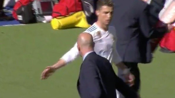 Ante la sorpresa generalizada, Cristiano Ronaldo reaccionó de buena manera y saludó a Zinedine ZIdane despuiés de que este lo saquedel partido ante el Atlético Madrid.