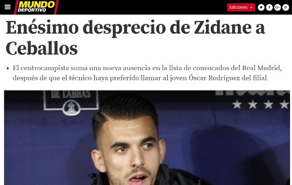 Para colmo, Zidane ha decidido convocar al joven Óscar Rodríguez, del filial de Real Madrid, un futbolista que posee características similares a las de Dani Ceballos. Por ello, su salida en el próximo mercado de pases es casi un hecho.