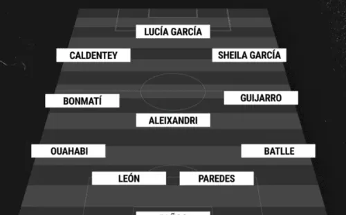 Las comandadas porJorge Vildainician con: Paños; Battle, Paredes, Mapi León, Ouahabi; Laia Aleixandri, Guijarro, Bonmatí; Sheila García, Lucía Garcíay Caldentey.