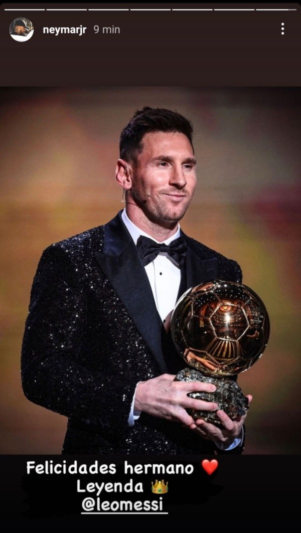 Mientras se recupera de un esguince de tobillo con lesión ligamentaria, Neymar aprovechó su cuenta de Instagram para felicitar a su compañero en PSG: “Felicidades, hermano. Leyenda“. Fueron las palabras que utilizó el brasileño a la distancia, acompañadas de emojis de un corazón y una corona.