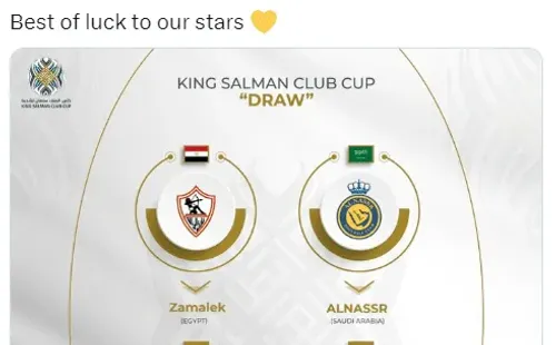Por la vía del sorteo, Al Nassr ha quedado asignado al Grupo C, por lo que se enfrentará en esta primera fase aZamalek SC de Egipto. Aún resta por definir quiénes serán los otros 2 participantes, que vendrán de las llaves Q2 y Q5. Los posibles rivales de Cristiano Ronaldo sonAl Merrikh (Sudán),Tishreen (Siria),Al-Shabab (Arabia Saudita),Al Quwa Al Yawiya (Irak),Fahman Abyan (Yemen), US Monastirienne (Túnez),Al-Muharraq (Bahrein) yAl-Seeb (Omán).