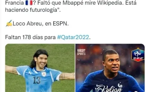 Fue precisamente en charla con ESPN, cuando el Loco soltó tremenda frase: “¿Cuántos títulos tiene Francia, y cuántas Eurocopas, quince no? Uruguay tiene dos Mundiales y quince Copas América. Le faltó Wikipedia a Mbappé. Porque ellos jueguen con europeos no significa que esos europeos son de primer nivel”.
