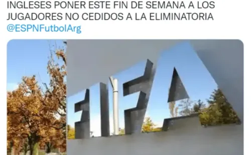 Christian Martin, el periodista argentino, informó este martes para El Gráfico y ESPN sobre la tensión que se vive en estos días entre FIFA y la máxima categoría del fútbol inglés:”Les prohibiría que pongan en sus equipos a los jugadores que no fueron cedidos a Eliminatorias. Esto podría ser una sanción de entre cinco y diez días“.