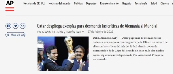 La organización del Mundial habría pagado 10 millones de dólares a una empresa integrada por ex agentes de la CIA con el objetivo de calmar las aguas mientras el FIFA Gate hacia temblar todos los cimientos de este deporte. AP (Associated Prees) asegura que la compañía contratada ha sido clave para que Qatar retenga la sede luego de que todo explotase en Zúrich allá por el 2015.
