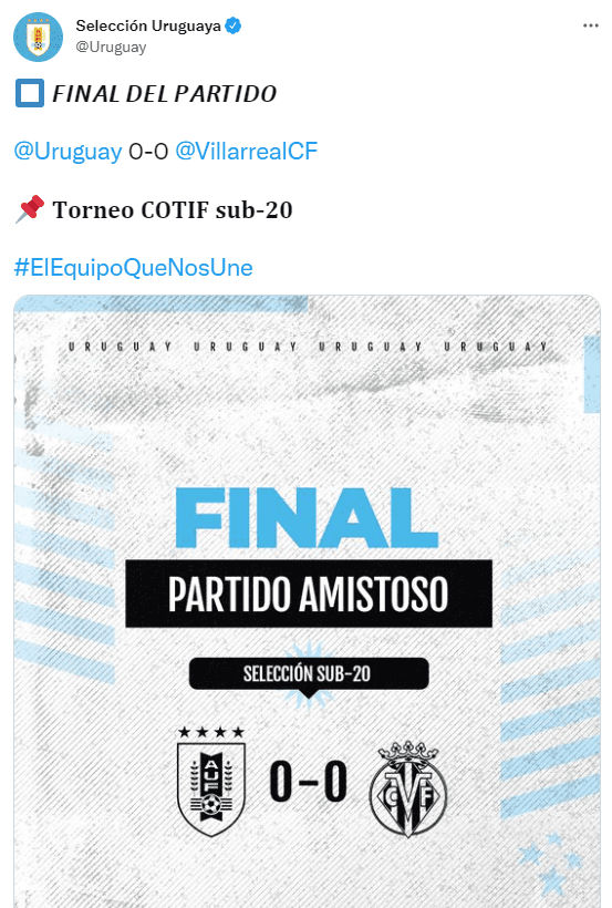 Este jueves, la Celeste no pudo imponerse ante Villarreal en un encuentro que terminó igualado sin goles, en lo que era la presentación de ambos equipos y el partido inaugural de la competencia amistosa. El próximo compromiso de Uruguay será el domingo cuando choque anteBandeirantes.