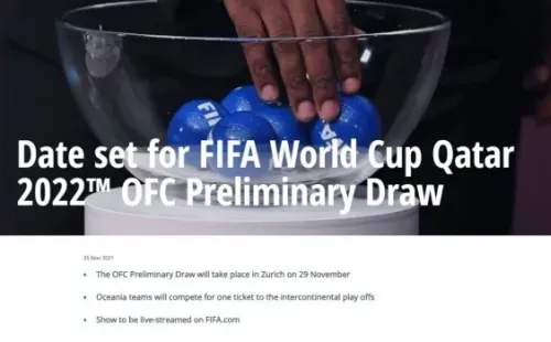 Este viernes 26 de noviembre se confirmó que el próximo lunes 29 de noviembre se desarrollará el sorteo de las Eliminatorias de Oceanía rumbo a Qatar 2022. Precisamente, esta competición no ha empezado, pese a que solamente hace falta menos de un año para que ruede la pelota en el Mundial.