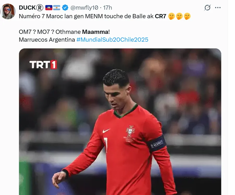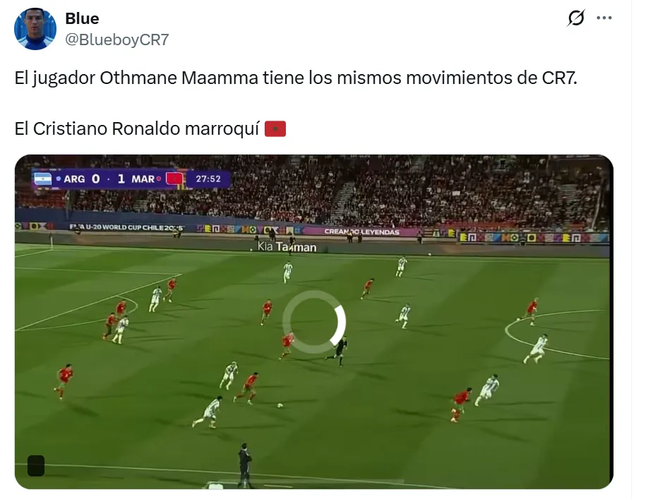 Su actuación hizo reaccionar de manera instantánea a las redes sociales y las comparaciones con la estrella portuguesa no tardaron en aparecer. “Estoy llorando, Othmane Maamma es literalmente CRISTIANO RONALDO”, fueron algunas de las frases que inundaron la red social X durante el encuentro.