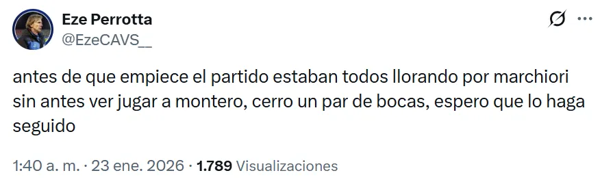 Como era de esperarse, las redes sociales explotaron de comentarios para Montero por parte de los hinchas de Vélez, que en un principio se opusieron a la decisión del DT de relegar a Marchiori pero que, ante semejante actuación, no tuvieron más remedio que rendirse a los pies del colombiano.