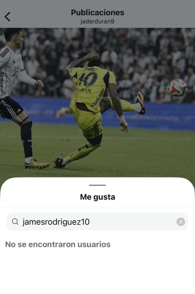 - James Rodríguez no dio ‘Me Gusta’ al post de Jhon Durán tras su gol con Fenerbahçe vs. Besiktas.