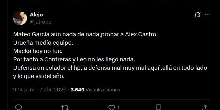 Ha sido la deuda pendiente todo el año y una vez más la defensa estuvo floja con Valencia, Arias y Llinas fueron de los más criticados por los hinchas. Arias se fue expulsado y el clamor fue de que no sea alineado otra vez.