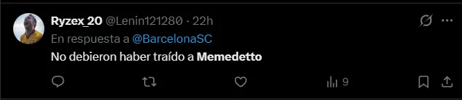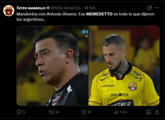 “Memedetto” fue el viral apodo que los hinchas de Barcelona empezaron a usar contra el argentino luego del partido contra Argentinos Juniors en las que se vio al ex Olimpia con falta de físico e intensidad.