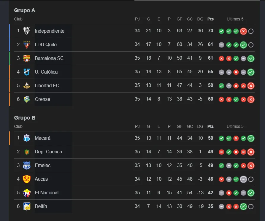 En el segundo hexagonal, Macará dio la sorpresa y escaló al 7mo puesto, aprovechando tropiezos de Deportivo Cuenca y Emelec y es el nuevo ubicado a clasificar a Sudamericana.